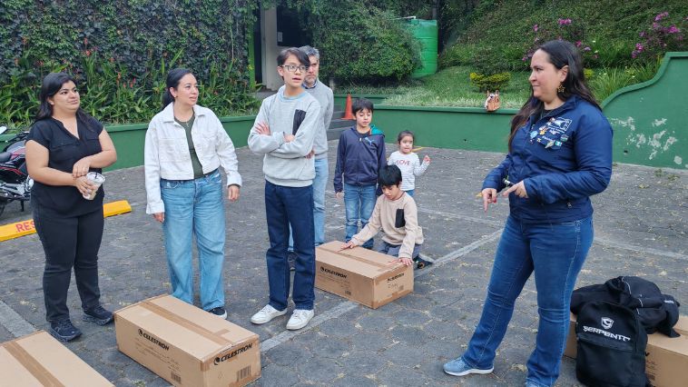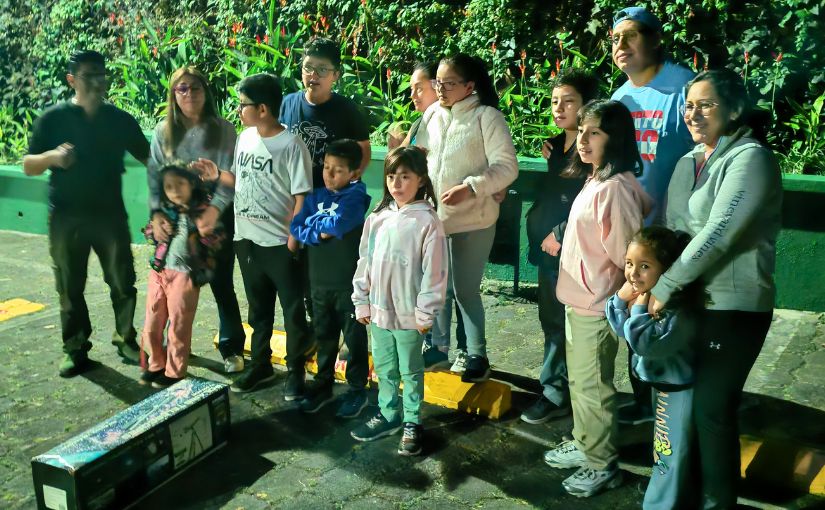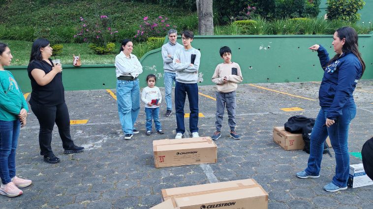 Al caer la noche, el ambiente se transformó. A partir de las 7:00 p.m., uno de los parqueos de la sede central de Universidad Galileo se convirtió en un observatorio urbano dinámico. Más de 100 personas, incluyendo familias, niños curiosos y aficionados con equipos propios que buscaban asesoría técnica, se reunieron para participar en una jornada de observación guiada.